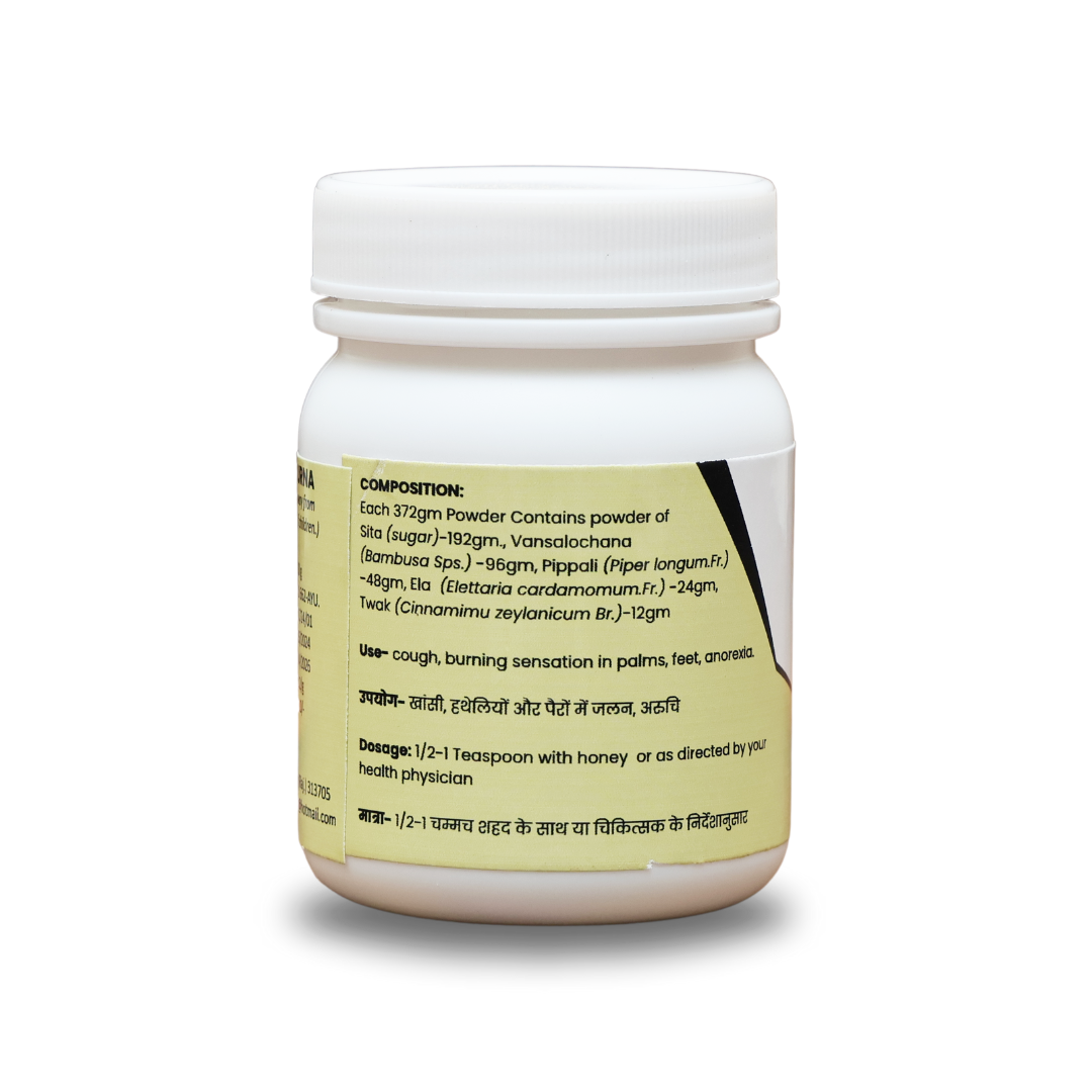 Respiratory Support: SitopaladiChurna is primarily used to support respiratory health. It helps in relieving cough, throat irritation, and respiratory congestion by clearing excess mucus and soothing inflamed tissues.