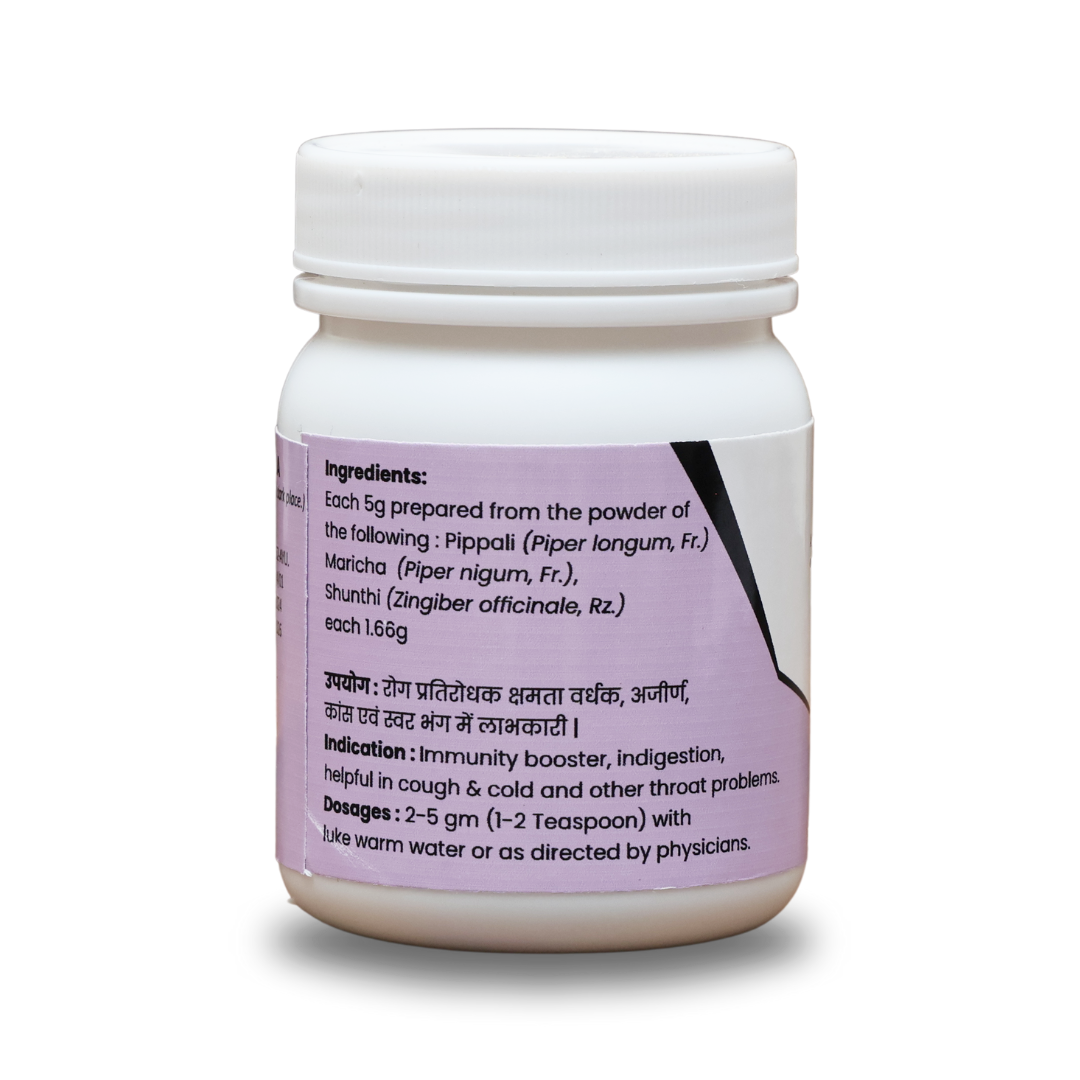 Trikatu Churna is a traditional Ayurvedic herbal formulation known for its digestive and metabolic benefits.